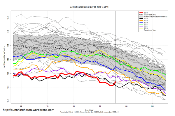 Sea Ice Extent (Global Antarctic and Arctic) – Day 96 – 2016