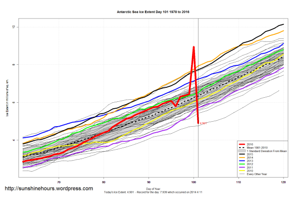 Sea Ice Extent (Global Antarctic and Arctic) – Day 101- 2016