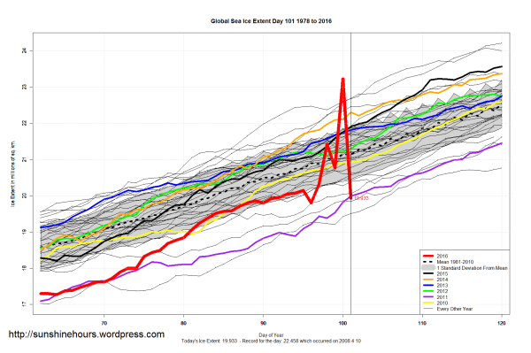 Sea Ice Extent (Global Antarctic and Arctic) – Day 101- 2016