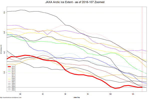 JAXA Arctic Ice Extent – as of 2016-107 Zoomed
