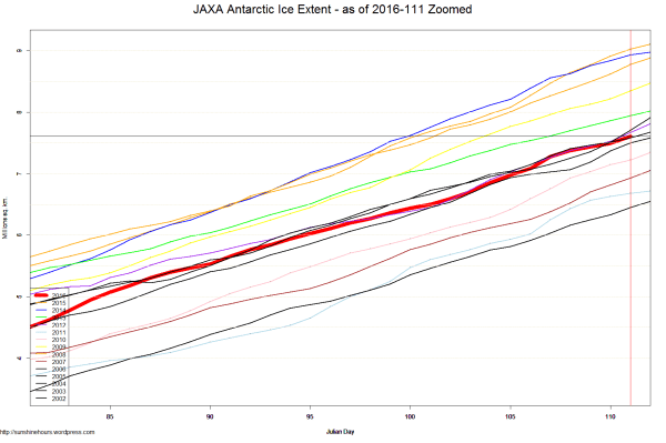 JAXA Sea Ice Extent (Antarctic and Arctic) – Day 111 – 2016