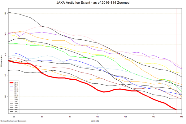 JAXA Arctic Ice Extent – as of 2016-114 Zoomed