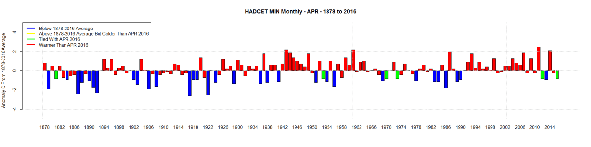 HADCET Apr 2016 Mean Temperature – Tied For 217th Warmest out of 358