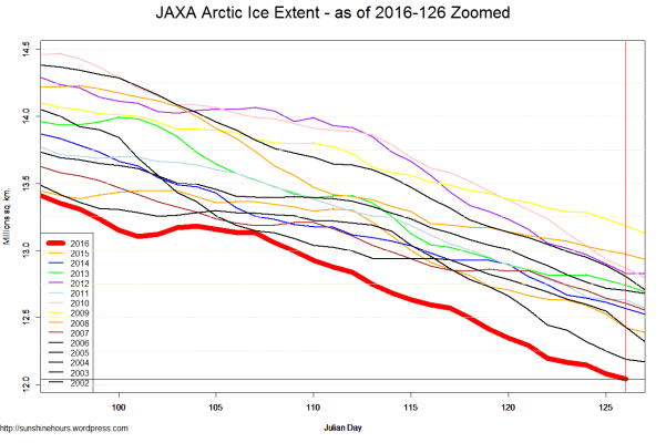 JAXA Arctic Ice Extent – as of 2016-126 Zoomed