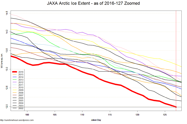 JAXA Arctic Ice Extent – as of 2016-127 Zoomed