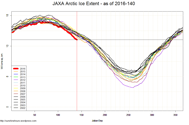JAXA Arctic Ice Extent – as of 2016-140