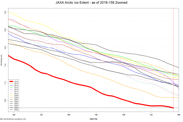 JAXA Arctic Ice Extent – as of 2016-159 Zoomed