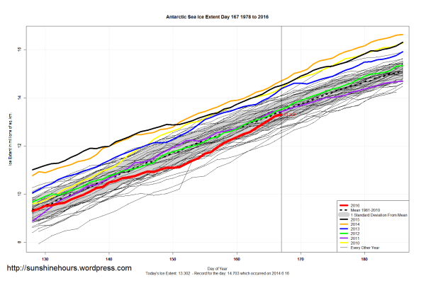 Sea Ice Extent (Global Antarctic and Arctic) – Day 167 – 2016