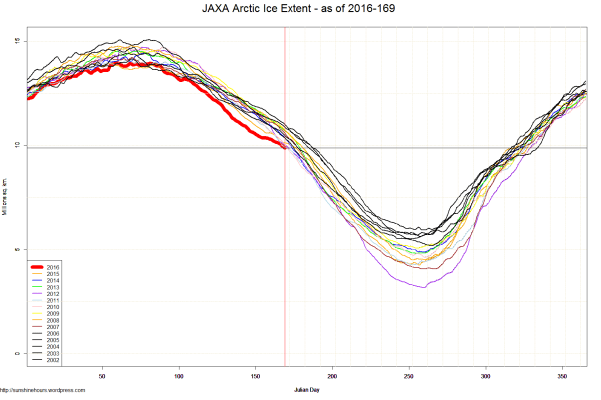 JAXA Sea Ice Extent (Antarctic and Arctic and Global) – Day 169 – 2016