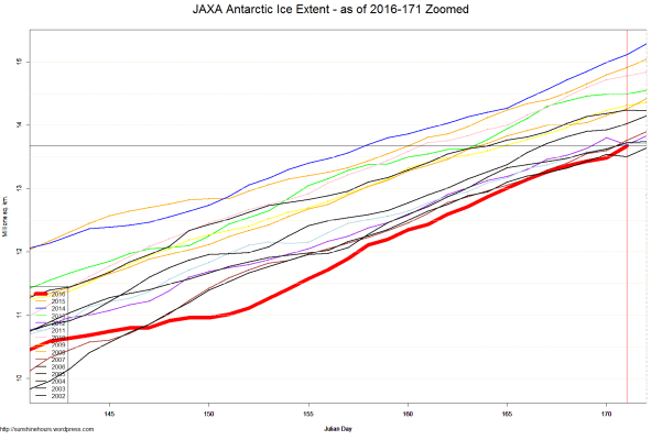 JAXA Sea Ice Extent (Antarctic and Arctic and Global) – Day 171 – 2016