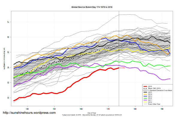 Sea Ice Extent (Global Antarctic and Arctic) – Day 174 – 2016