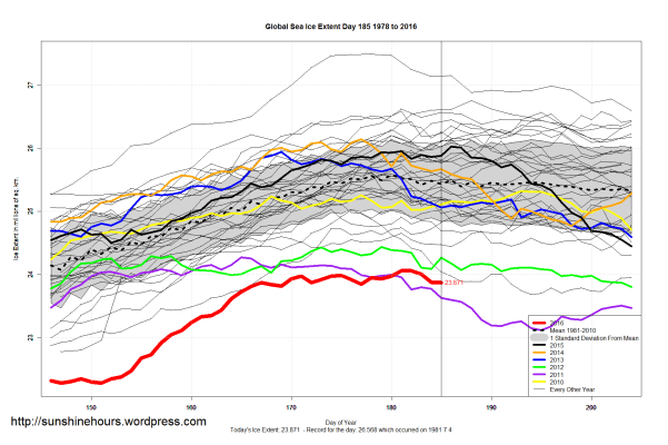 Sea Ice Extent (Global Antarctic and Arctic) – Day 185 – 2016