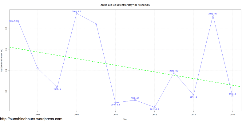 Sea Ice Extent (Global Antarctic and Arctic) – Day 186 – 2016