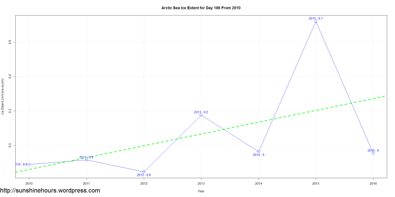 Arctic Sea Ice Extent for Day 186 From 2010