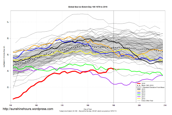 Sea Ice Extent (Global Antarctic and Arctic) – Day 190 – 2016