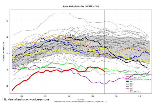 Sea Ice Extent (Global Antarctic and Arctic) – Day 196 – 2016