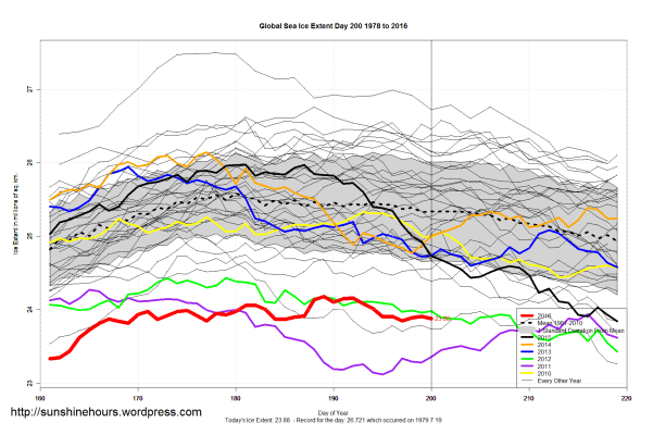 Sea Ice Extent (Global Antarctic and Arctic) – Day 200 – 2016