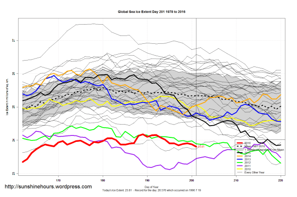 Sea Ice Extent (Global Antarctic and Arctic) – Day 201 – 2016