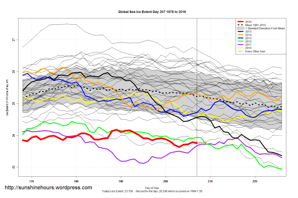 Sea Ice Extent (Global Antarctic and Arctic) – Day 207- 2016