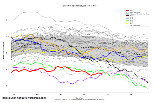 Sea Ice Extent (Global Antarctic and Arctic) – Day 208 – 2016