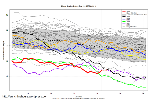 Sea Ice Extent (Global Antarctic and Arctic) – Day 222 – 2016