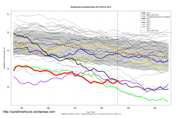 Sea Ice Extent (Global Antarctic and Arctic) – Day 226 – 2016