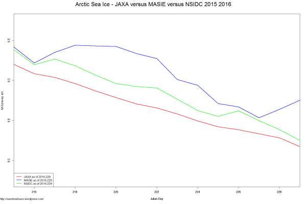 Arctic Sea Ice – JAXA versus MASIE versus NSIDC 2016-08-17
