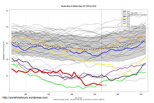 Sea Ice Extent (Global Antarctic and Arctic) – Day 253 – 2016
