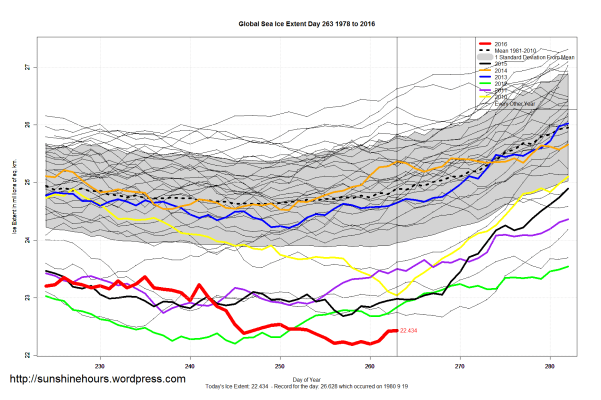 Sea Ice Extent (Global Antarctic and Arctic) – Day 263 – 2016