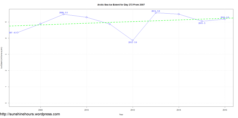 Sea Ice Extent (Global Antarctic and Arctic) – Day 272 – 2016