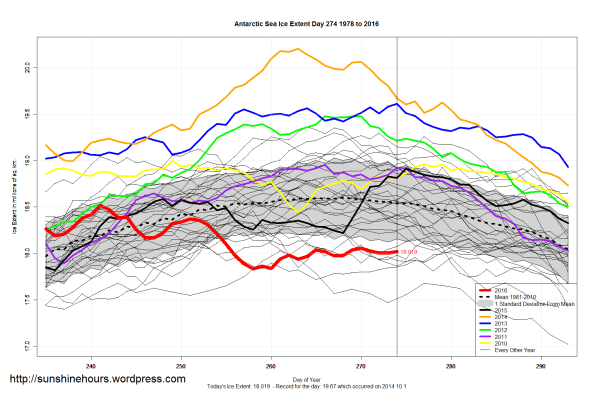 Sea Ice Extent (Global Antarctic and Arctic) – Day 274 – 2016