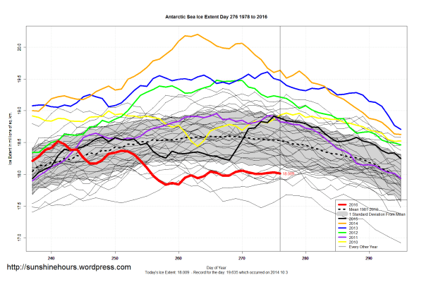 Sea Ice Extent (Global Antarctic and Arctic) – Day 276 – 2016