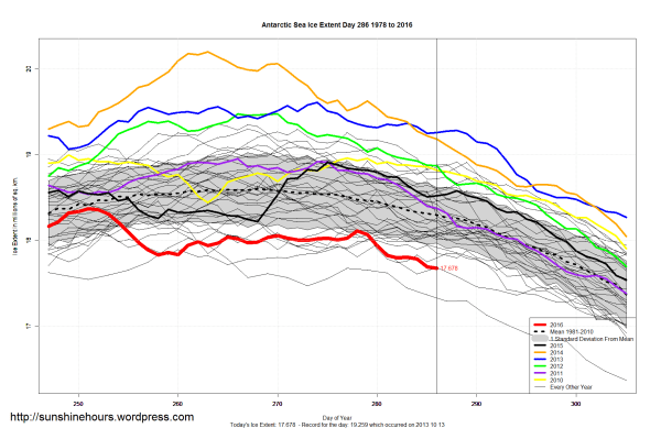 Sea Ice Extent (Global Antarctic and Arctic) – Day 286 – 2016