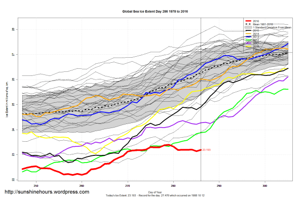 Sea Ice Extent (Global Antarctic and Arctic) – Day 286 – 2016