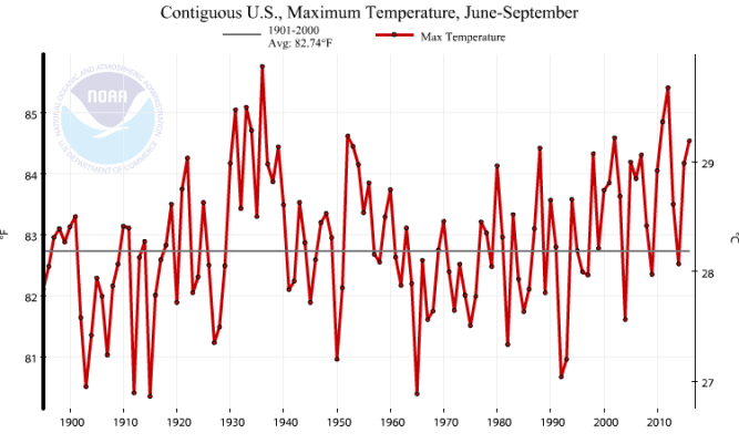 CO2 versus USA Jun-Sep Max Temp