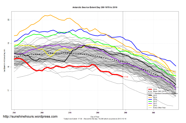 Sea Ice Extent (Global Antarctic and Arctic) – Day 289 – 2016