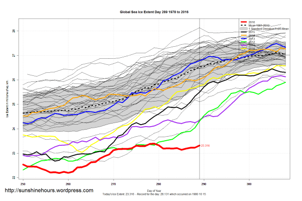 Sea Ice Extent (Global Antarctic and Arctic) – Day 289 – 2016