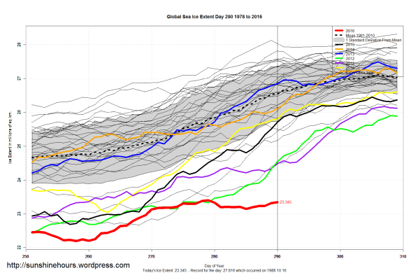 Sea Ice Extent (Global Antarctic and Arctic) – Day 290 – 2016