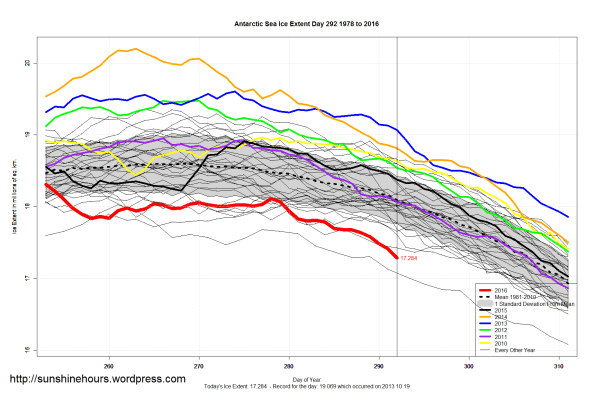 Sea Ice Extent (Global Antarctic and Arctic) – Day 292 – 2016