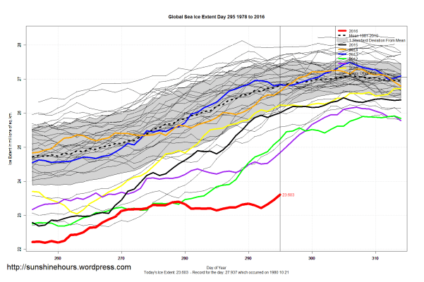 Sea Ice Extent (Global Antarctic and Arctic) – Day 295 – 2016