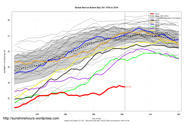Sea Ice Extent (Global Antarctic and Arctic) – Day 301 – 2016