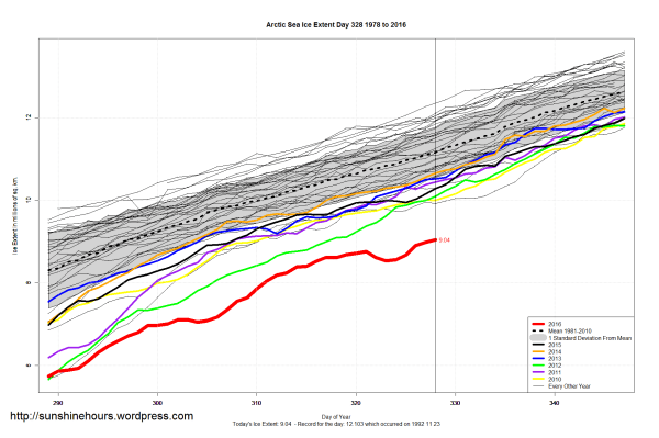 Sea Ice Extent (Global Antarctic and Arctic) – Day 328 – 2016