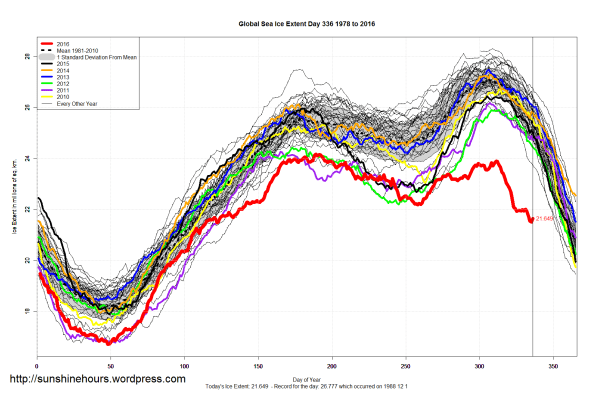 Sea Ice Extent (Global Antarctic and Arctic) – Day 336 – 2016