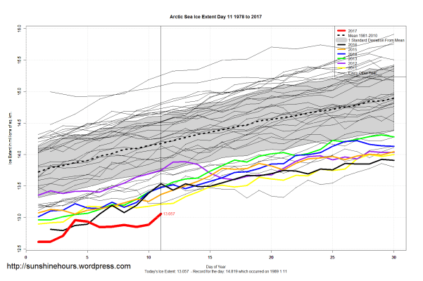 Sea Ice Extent (Global Antarctic and Arctic) – Day 11 – 2017