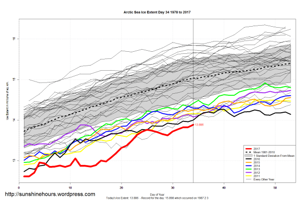 Sea Ice Extent (Global Antarctic and Arctic) – Day 34 – 2017