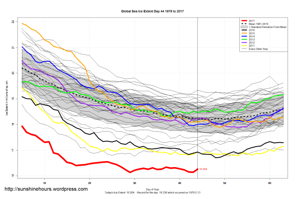 Sea Ice Extent (Global Antarctic and Arctic) – Day 44 – 2017