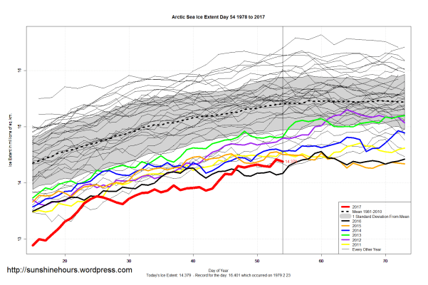 Sea Ice Extent (Global Antarctic and Arctic) – Day 54 – 2017