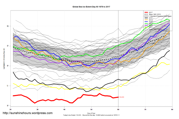 Sea Ice Extent (Global Antarctic and Arctic) – Day 60 – 2017