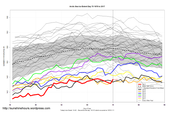 Sea Ice Extent (Global Antarctic and Arctic) – Day 70 – 2017