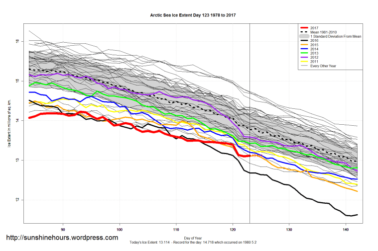 4 thoughts on “Sea Ice Extent (Global Antarctic and Arctic) – Day 123- 2017”